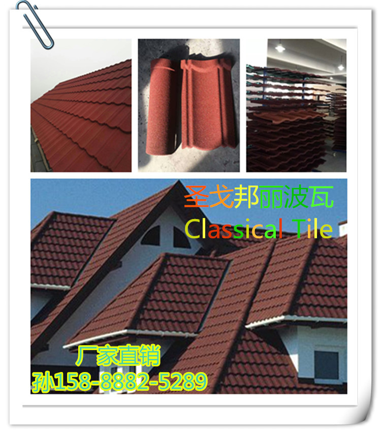 圣戈邦牌的连云港彩石金属瓦厂家出售158-8882-5289【首选圣戈邦】产品:估价:30,规格:1340*420,产品系列编号:310000 发布日期:2017-12-19